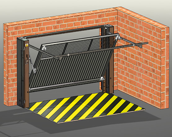 The counterweights make sure the door opens and closes easily and smoothly. Their weight can be adjusted to suit the door leaf weight on site. No use of tension or compression springs that are prone to wear.