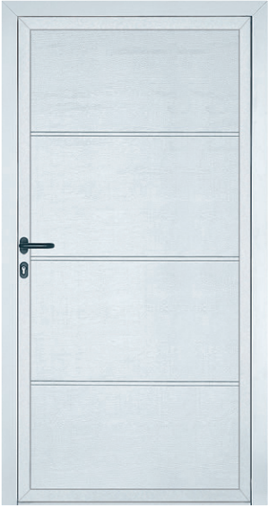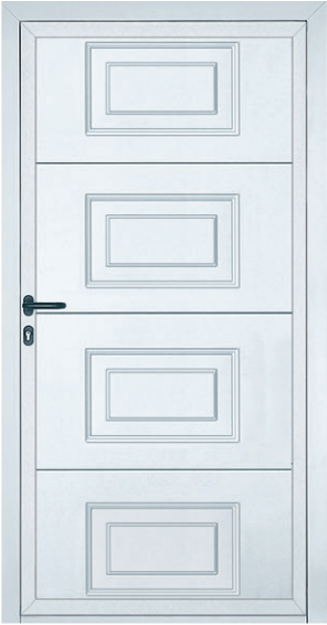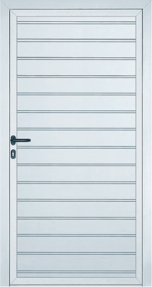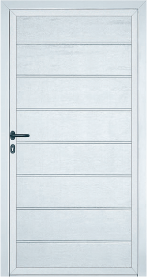 Novoferm side doors are available in a wide range of door patterns, surface finishes and colours. They are standard fitted with a black rounded handle set and security lock.