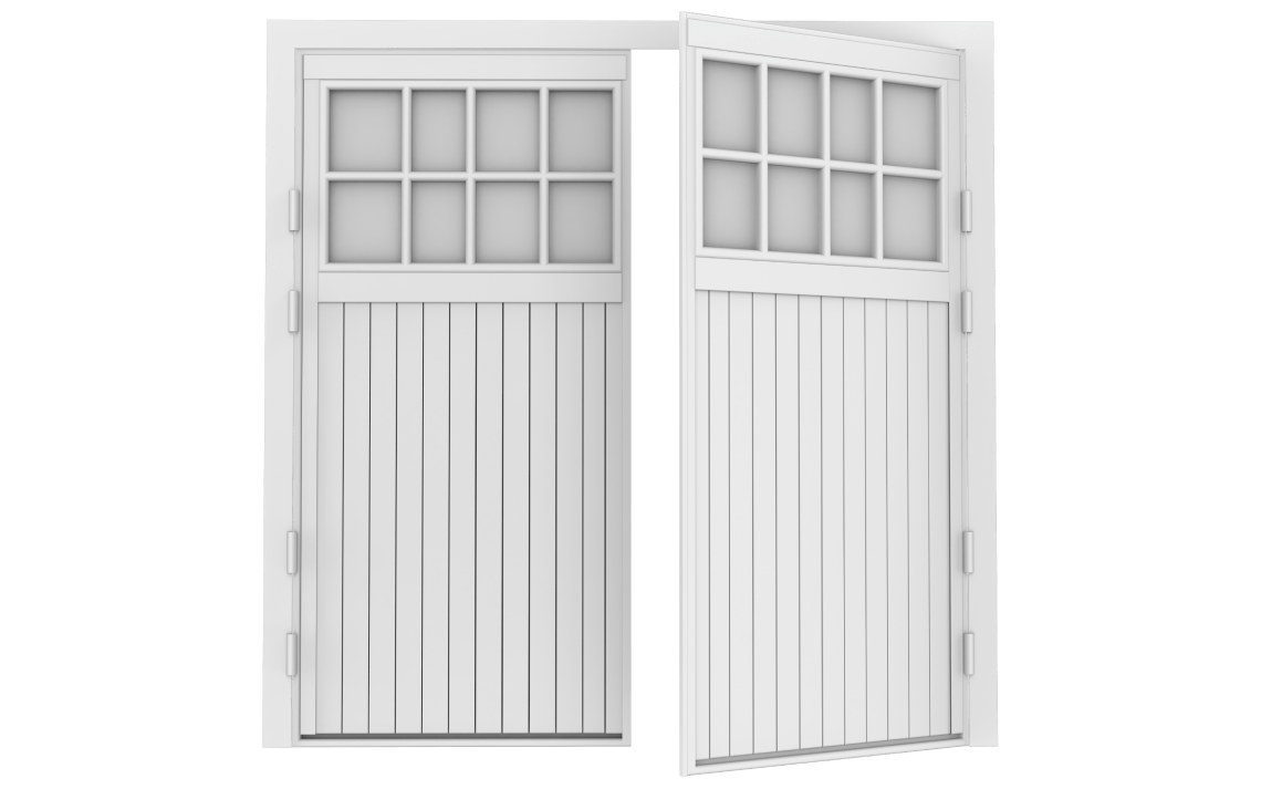 Transparent or clear windows are see-through and allow light into the garage. Translucent windows have a stippled effect which allows light into the garage but are not see-through. Plain black windows are decorative only and don’t allow any light into the garage.