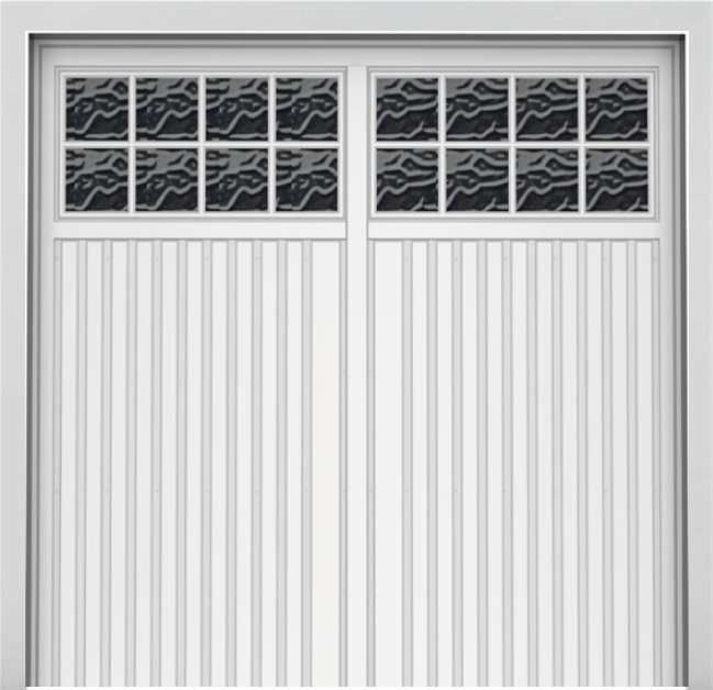 Horizontal or vertical window cut-outs can be installed in ribbed garage doors, though this is dependent on the type of door. For raised-panel garage doors, you’ll only be able to choose vertical window cut-outs. Please note that all windows are available with either transparent or crystal 3mm acrylic double glazing.