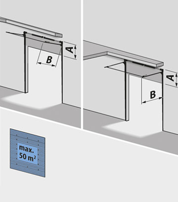 T 500 DS (B550 dock) Track system with vertical guide, spring shaft at the base A = Clear height + 400 mm Max. width: 3200 mm Max. height: 3200 mm