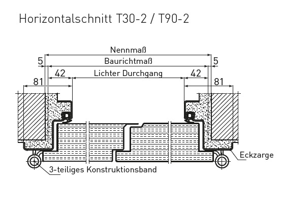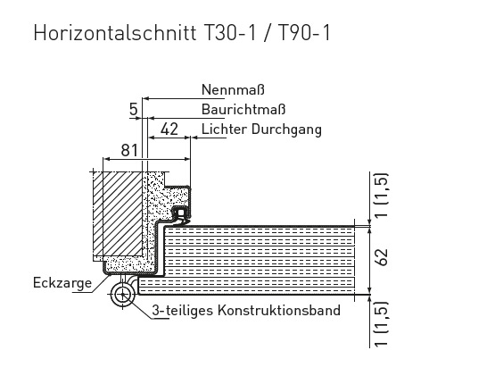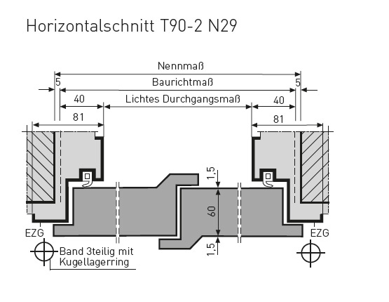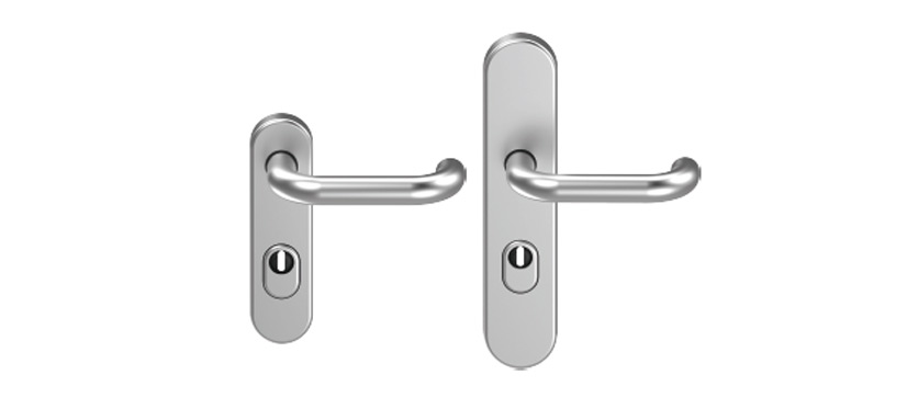 2 hinge plates, three-dimensionally adjustable (standard 3-D hinge), with hinge lock, aluminium knob-lever set as per DIN 18257 ES 1 ZA with 72 mm short plate and SI profile cylinder as per DIN 18252 BS (35 + 26 mm), safety card and three keys.