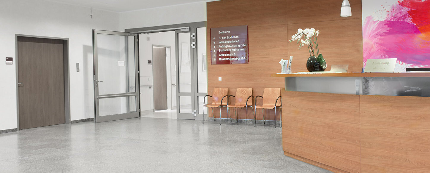 On the heart surgery ward, single and double leaf NovoFire® fire resistant doors with T30 classification and smokeproof doors were tailored to requirements and connected to the walls as needed with F30 side panels. The two fire seals at the entrance and exit to the ward, especially, proved to be quite challenging. To enable staff to manoeuvre the cumbersome beds easily, the doors need to open particularly wide. At the same time, the fire resistant doors need to open and close automatically. This required, for example, automatic swing door operators, sensor strips, electric openers, and magnetic hold open systems. What was particularly challenging was that it took the intelligent combination of the technology required to assure functional performance and individual programming of each door to produce door control solutions that exactly matched the hospital’s requirements. A keypad to manually trigger the command to open the door was a conscious choice to avoid unnecessary opening signals on the heavily frequented corridors.