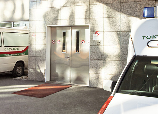 People or objects – such as beds – passing through the door are registered by sensors and the doors are held open conveniently for as long it takes for them to pass completely through. The doors then close on their own. Fire safety is restored. Open communication was also the primary factor dictating the design of the fire resistant door to the nurses’ room.